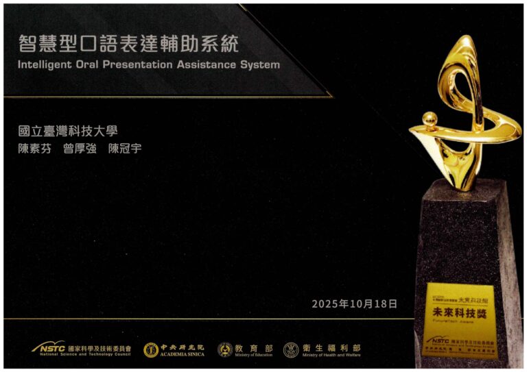 The 2025 Future Tech Award attracted more than 500 technology submissions, from which 83 breakthrough innovations were selected, showcasing Taiwan’s strong capacity for scientific research and cross-disciplinary innovation. The research project — “Intelligent Oral Presentation Assistance System”